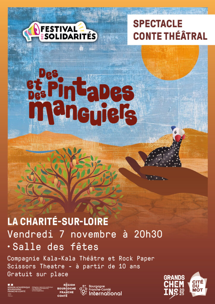 GRANDS CHEMINS est une initiative de la Cité du Mot, du Centre Social Intercommunal La Pépinière et du Centre d’Accueil pour Demandeurs d’Asile de La Charité. Elle s’inscrit dans la dynamique du festival des solidarités qui s’attache à promouvoir et célébrer une solidarité ouverte au monde et aux autres.